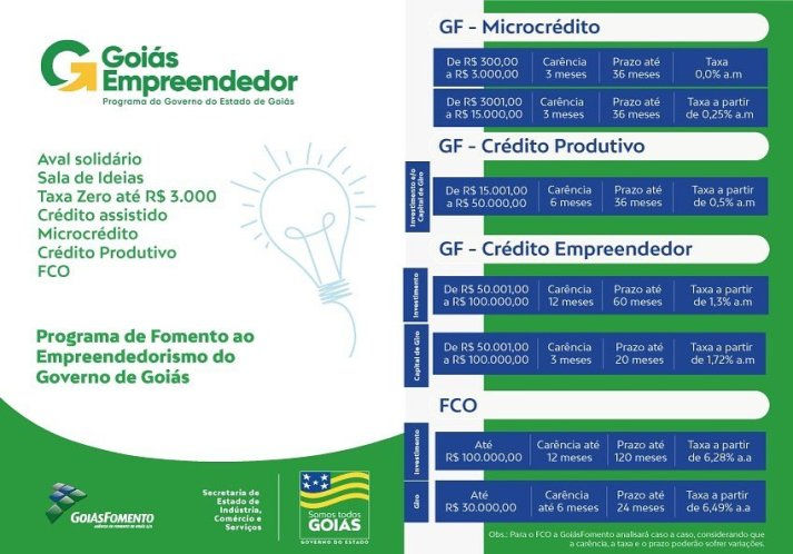 Segundo Wilder Morais, o Goiás Empreendedor é meta estratégica de um programa maior, o Goiás de Resultados e prevê a realização de cerca de 14 mil contratos de linhas de crédito disponibilizados pelo programa. Hoje existem R$ 150 milhões disponíveis para empréstimos em várias linhas de crédito, como microcrédito, Crédito Produtivo e FCO.