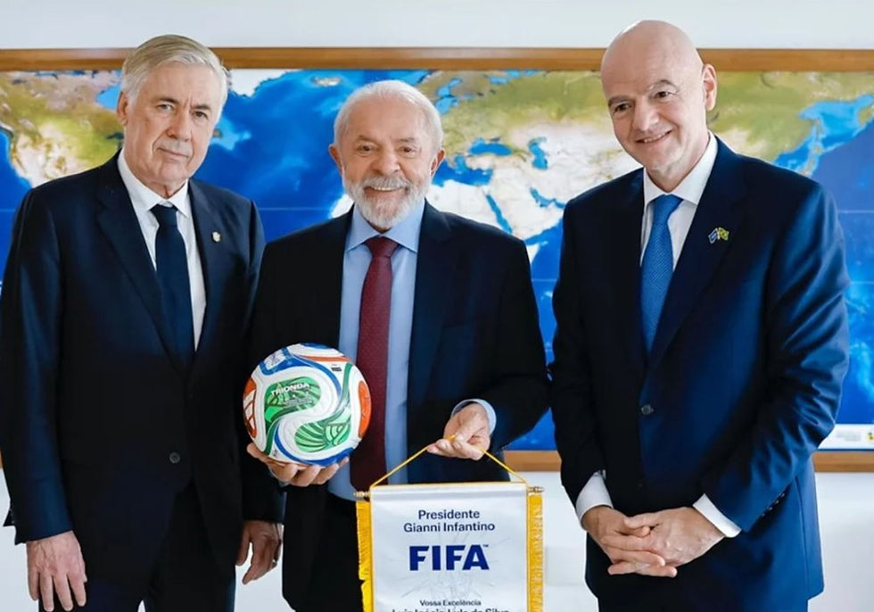 Lula recebe Gianni Infantino e Carlo Ancelotti para tratar da Copa 2027 e solta piada sobre Corinthians